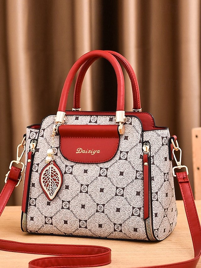 Elegant Women’s Faux Leather Handbag with Red Accents and