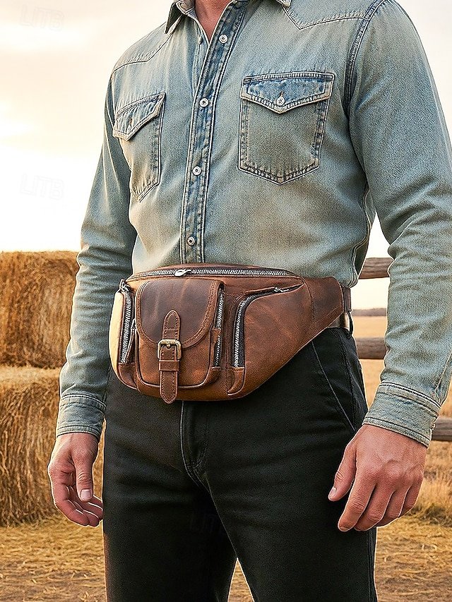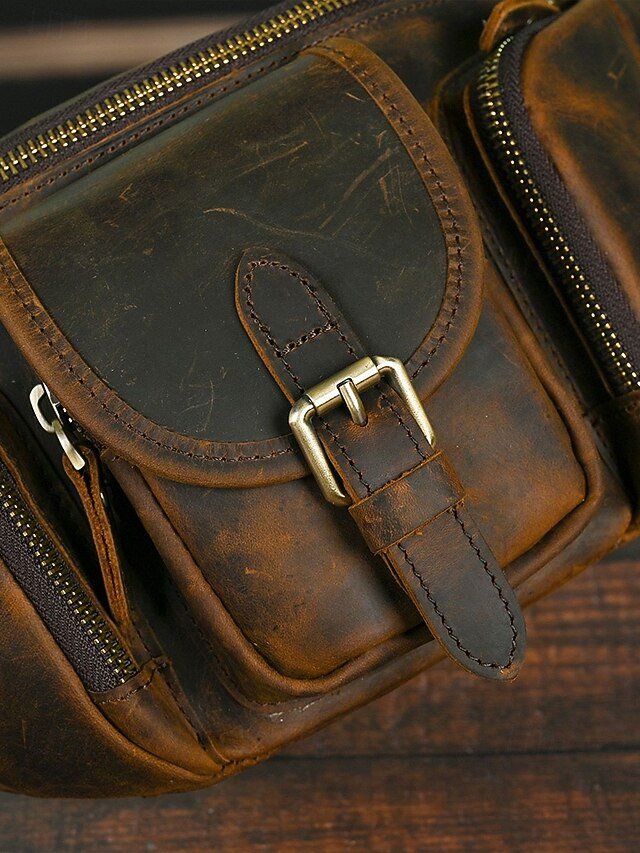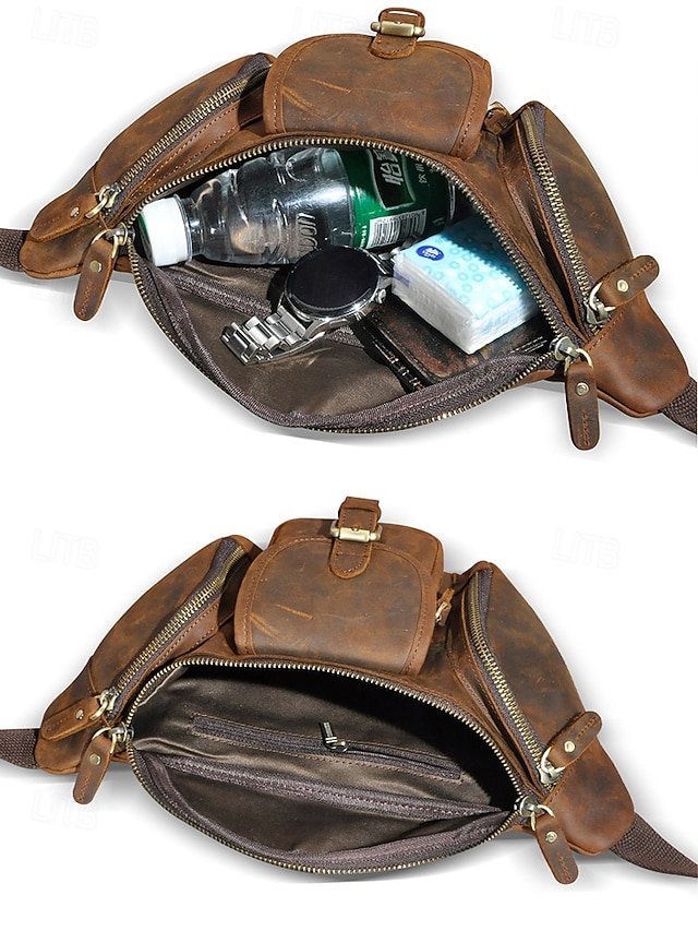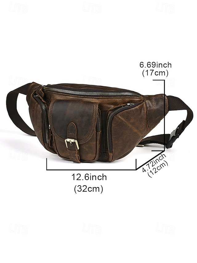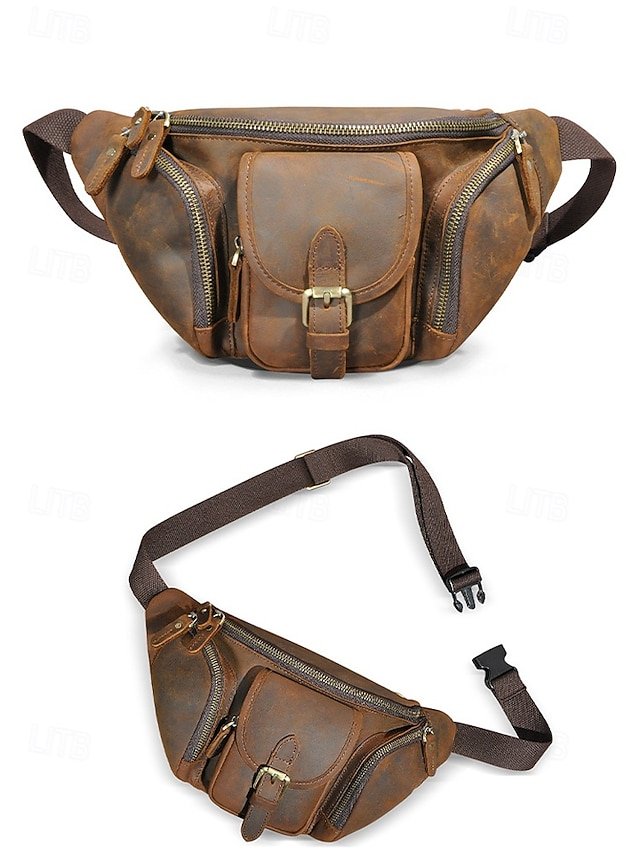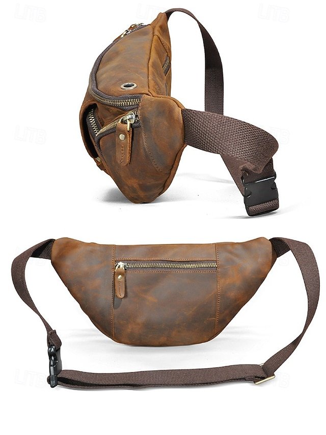 Gender: Men’s, Type: Fanny Pack, Chest Bag, Crossbody Bag, Material: Leather, Embellishment: Zipper, Multiple pockets, Pattern: Solid Color, Detachable strap: Non-Detachable, Adjustable strap: Adjustable, Occasion: Father’s Day, Outdoor, Casual Daily, Casual, Width (cm): 32, Height (cm): 17, Length (cm): 12, Function: Lightweight, Large Capacity, Multi Carry, Category: Waist Bag,