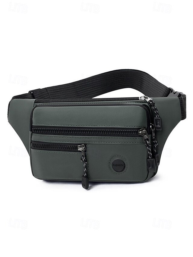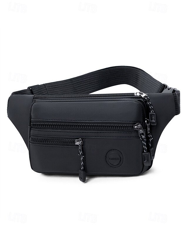 Gender: Men’s, Type: Fanny Pack, Crossbody Bag, Belt Bag, Material: Nylon, Embellishment: Zipper, Multiple pockets, Pattern: Solid Color, Detachable strap: Non-Detachable, Adjustable strap: Adjustable, Occasion: Outdoor, Casual Daily, Casual, Width (cm): 30, Height (cm): 13, Length (cm): 3, Function: Waterproof, Lightweight, Multi Carry, Category: Waist Bag,