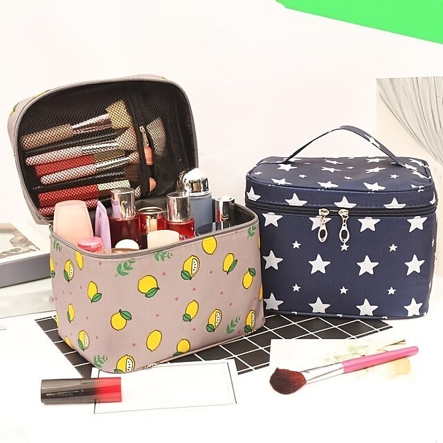 Gender: Women’s, Men’s, Type: Cosmetic Bag, Material: Polyester, Pattern: Cartoon, Occasion: Party, Travel, Width (cm): 19.5, Height (cm): 17.5, Length (cm): 27, Function: Breathable, Large Capacity, Durable, Anti-Shock, Anti-Dust, Category: Handbag, Makeup Bag,