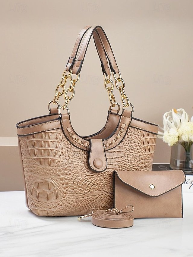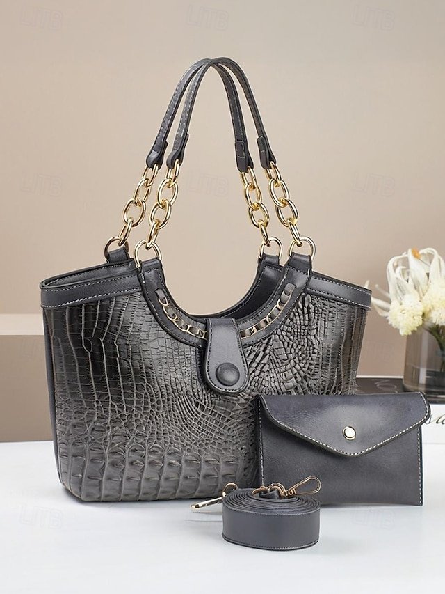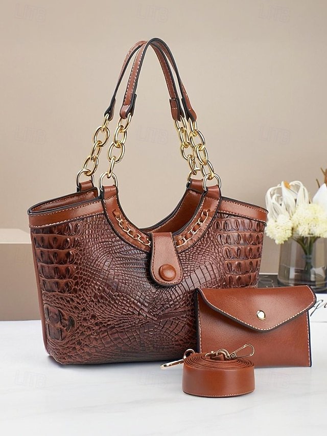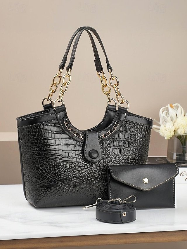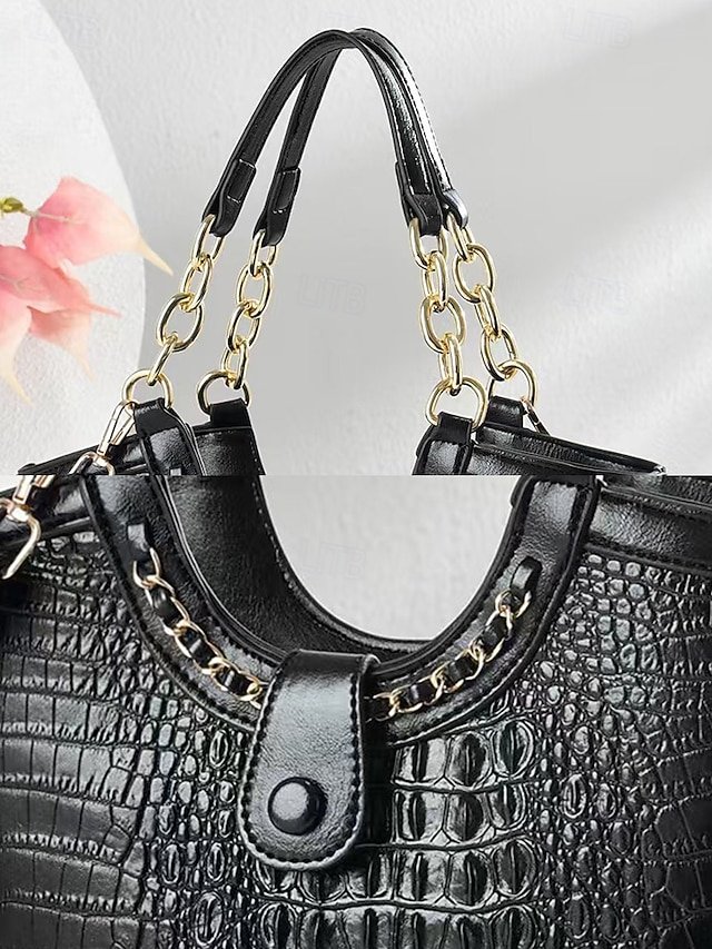 Gender: Women’s, Type: Crossbody Bag, Shoulder Bags, Material: PU Leather, Embellishment: Chain, Decorative stitching, Pattern: Crocodile, Solid Color, Detachable strap: Detachable, Adjustable strap: Adjustable, Occasion: Mother’s Day, Office, Casual Daily, Width (cm): 32, Height (cm): 25, Length (cm): 9, Function: Waterproof, Large Capacity, Multi Carry, Category: Shoulder Bag,