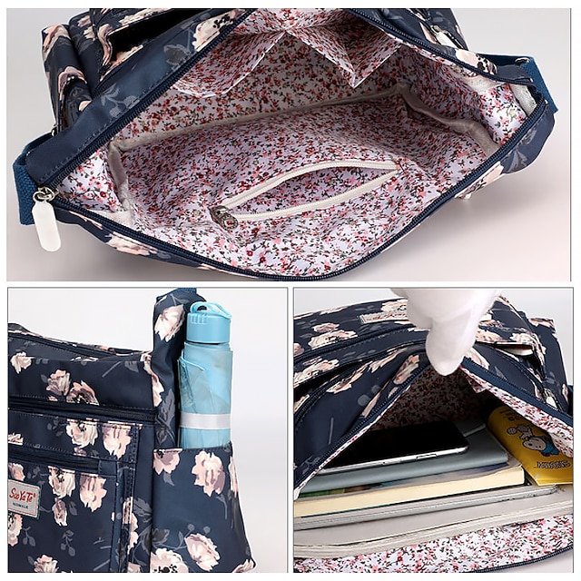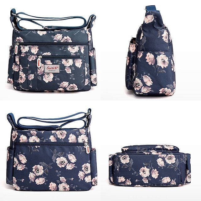 Gender: Women’s, Type: Hobo Bag, Material: Oxford Cloth, Embellishment: Zipper, Pattern: Flower, Occasion: Holiday, Daily, Outdoor, Width (cm): 15, Length (cm): 26, Height (cm): 21, Function: Waterproof, Lightweight, Large Capacity, Durable, Category: Shoulder Bag, Crossbody Bag,